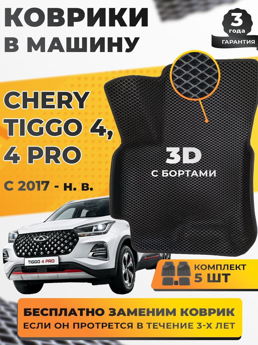 Коврики EVA для Chery Tiggo 4 1 поколение (09.2017 - н.в.) - Комплект в салон - 3D С бортиками - Черный - Черный кант