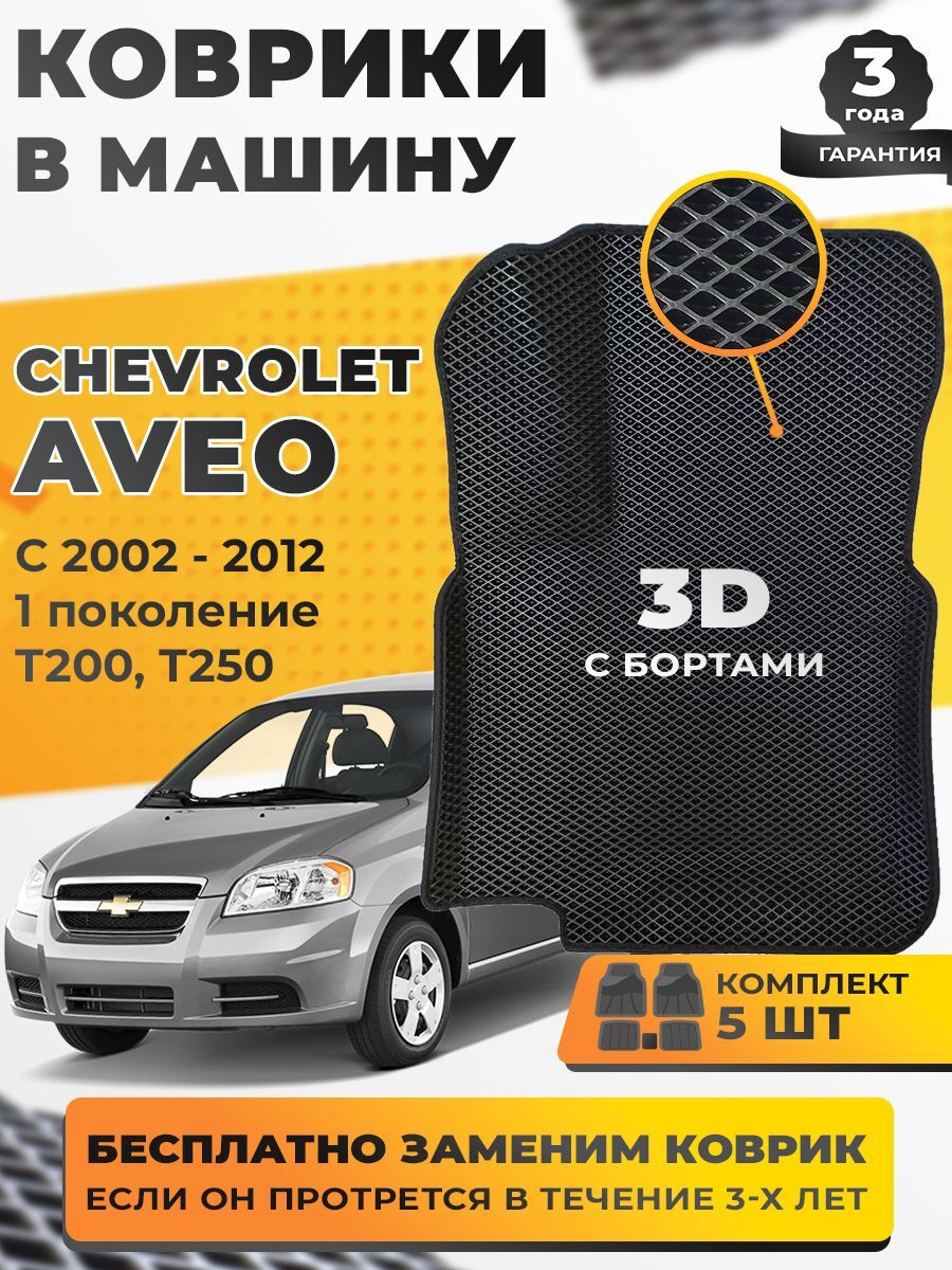Коврики EVA для Chevrolet Aveo 1 поколение, T200, T250 (03.2002 - 02.2012) - Комплект в салон - 3D С бортиками - Черный - Черный кант