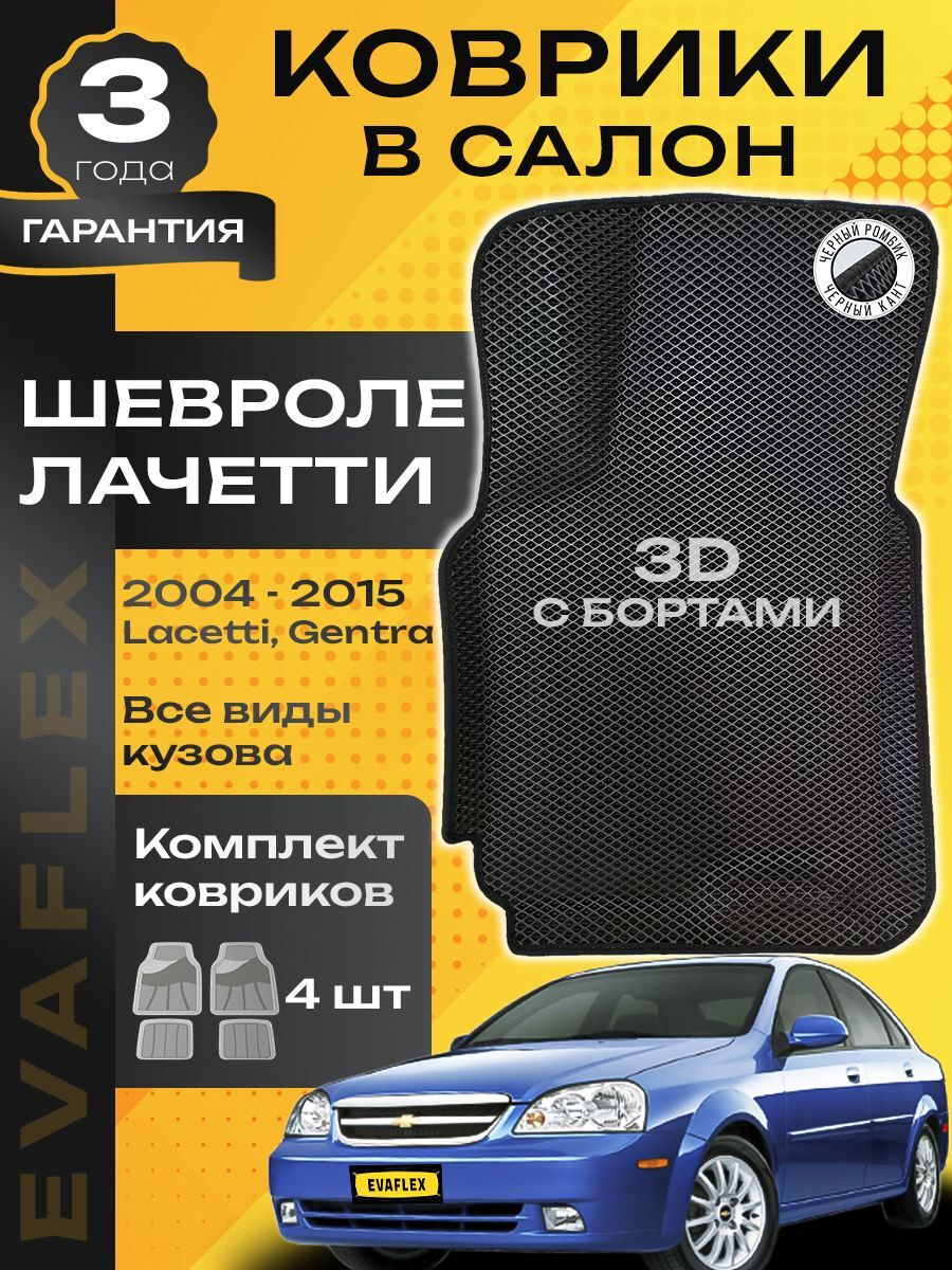 Коврики EVA для Chevrolet Lacetti 1 поколение, J200 (06.2004 - 03.2013) - Комплект в салон - 3D С бортиками - Черный - Черный кант