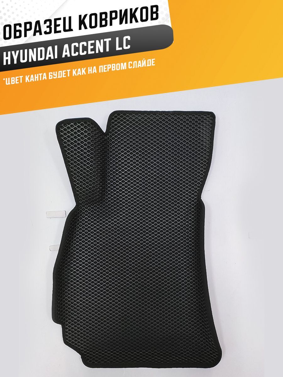 Коврики EVA для Hyundai Accent 2 поколение, LC (07.1999 - 08.2012) - Комплект в салон - 3D С бортиками - Черный - Черный кант