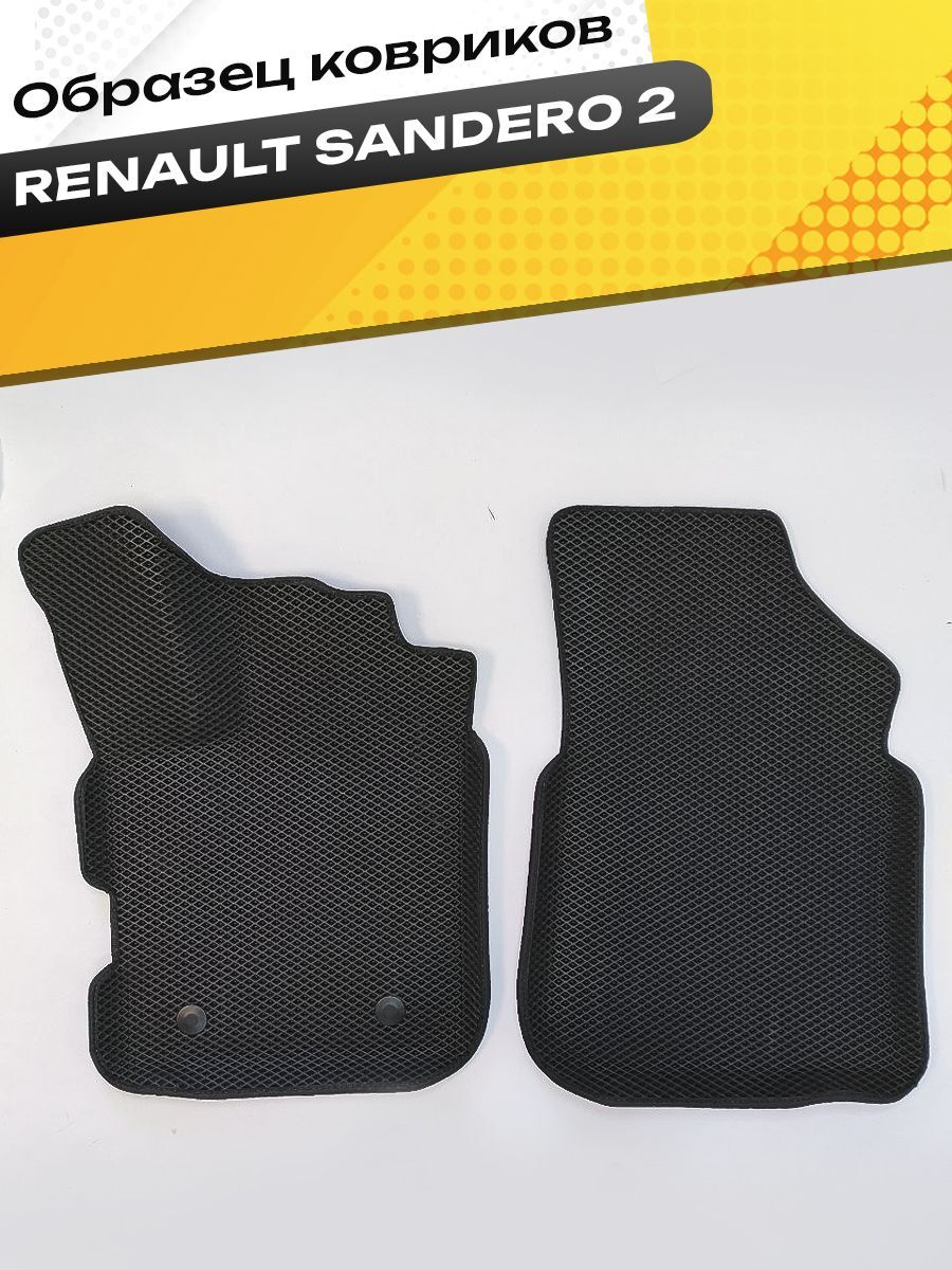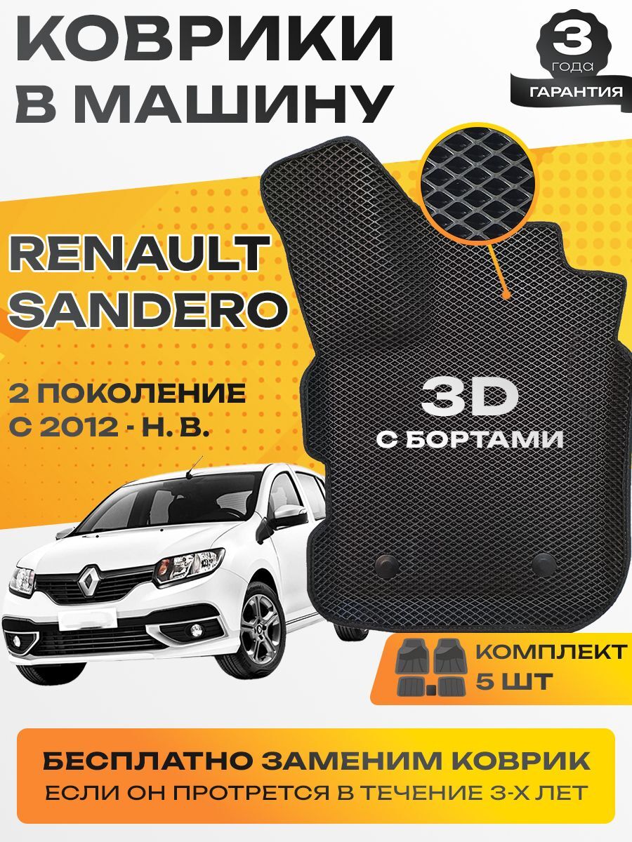 Коврики EVA для Renault Sandero 2 поколение (09.2012 - н.в.) - Комплект в салон - 3D С бортиками - Черный - Черный кант