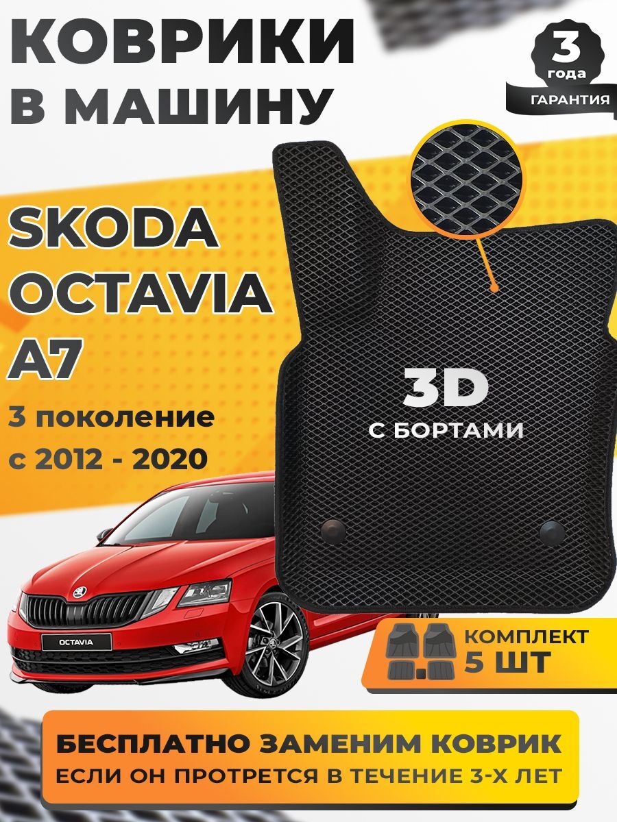 Коврики EVA для Skoda Octavia 3 поколение, A7 (12.2012 - 05.2020) - Комплект в салон - 3D С бортиками - Черный - Черный кант
