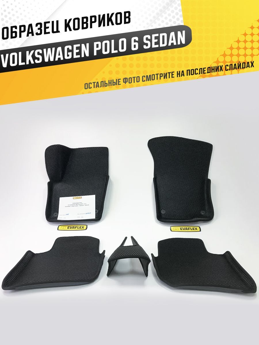 Коврики EVA для Volkswagen Polo 6 поколение, Mk6 (02.2020 - н.в.) - Комплект в салон - 3D С бортиками - Черный - Черный кант