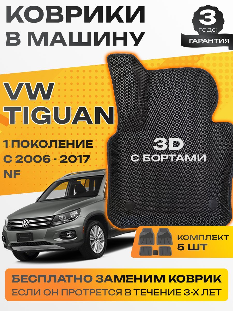 Коврики EVA для Volkswagen Tiguan 1 поколение, NF (12.2006 - 07.2017) - Комплект в салон - 3D С бортиками - Черный - Черный кант